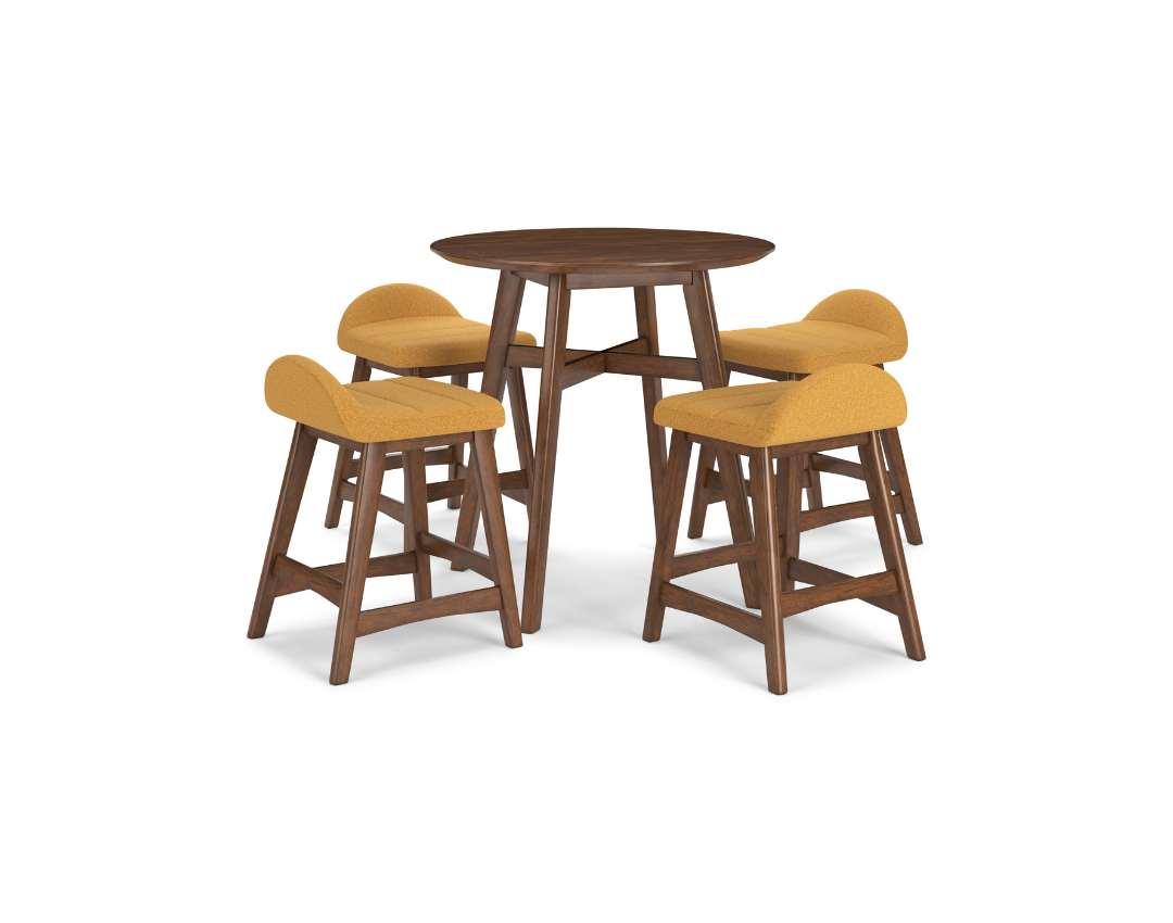 An updated take on a retro aesthetic, this high dining table set brings simplicity to your dining room, embodying the architectural language of mid-century design.