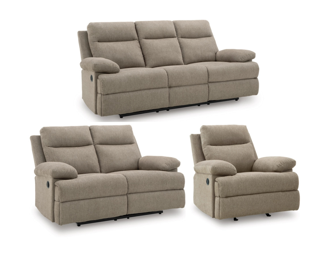 With a fully upright or fully reclined position, this classically inspired rocking recliner set truly embodies the art of total relaxation.